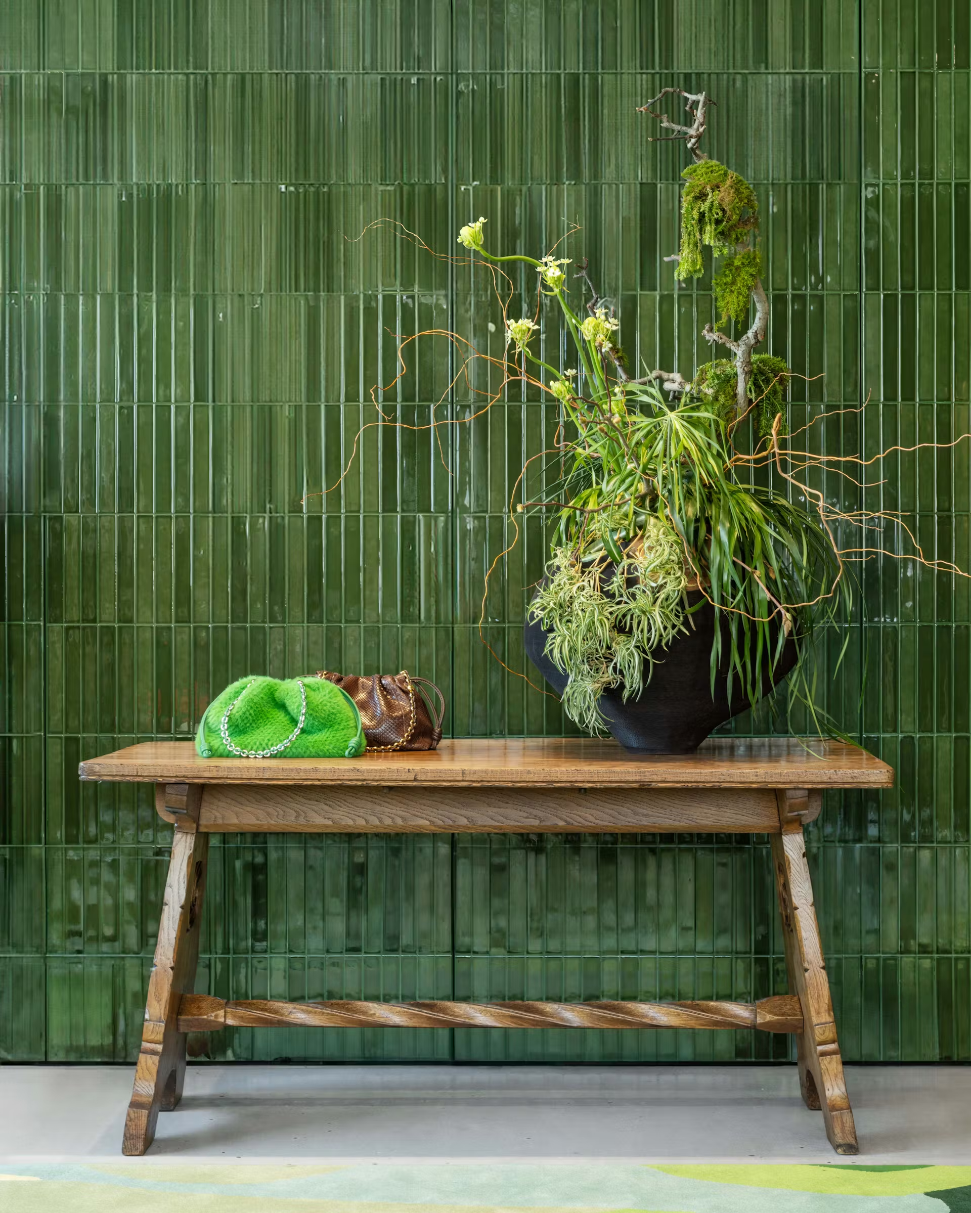 Also featured throughout are ceramics by British potter John Ward and decorative pieces by Japanese bamboo-weaver Hafu Matsumoto.