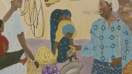 A close-up of. Skepta's painting “Mama Goes to Market.” Image credit: Sotheby's