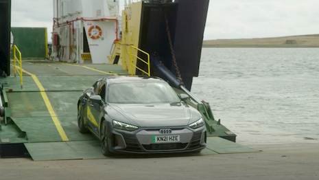 The e-tron GT quattro arriving in Orkney. Image credit: Audi