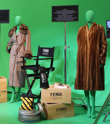 Fur coats featured in feature films on view at Fendi Studios. Image credit: Fendi