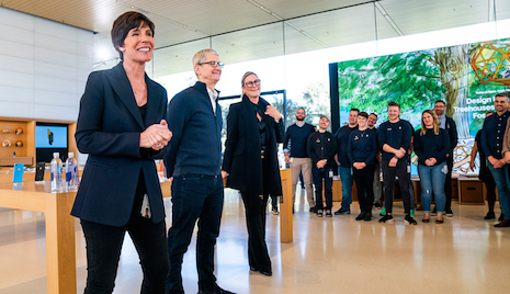 New senior vice president Diedre O'Brien speaks to employees at Apple. Image credit: Apple