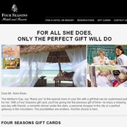 The Four Seasons Hotels & Resorts is focusing on gift cards in its latest email campaign targeting past guests who are likely in search of Mother’s Day gift ideas.
