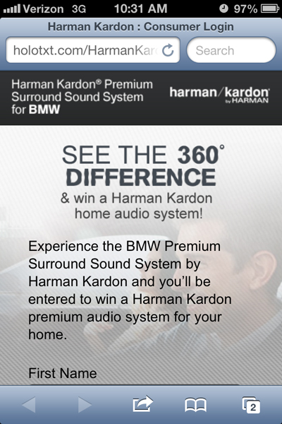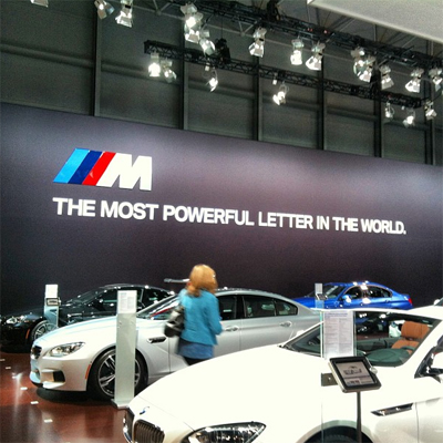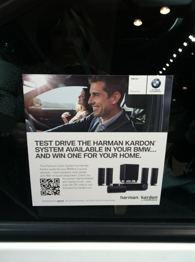 German automaker BMW is flaunting the Harman Kardon sound system in its vehicles through QR codes on the windows of certain models displayed at the New York International Auto Show.