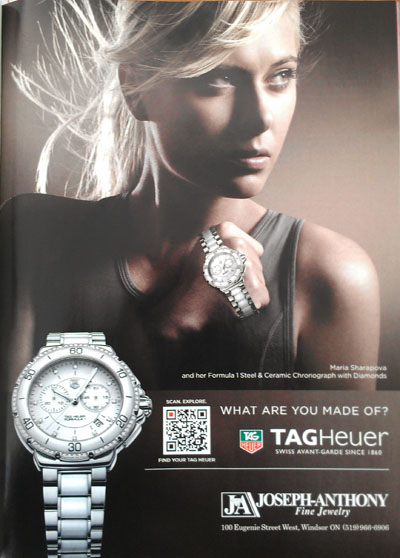 Swiss watchmaker Tag Heuer printed a QR code on its advertisement in the May issue of Vogue to bring readers to mobile-optimized content that showcases its women’s timepieces.