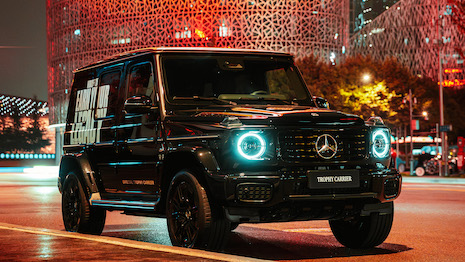 Mercedes-Benz created a custom, electric G-Class vehicle that transported the Summoner’s Cup to the championship’s arena. Image credit: Mercedes-Benz