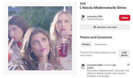 Lancôme shares video content on Pinterest
