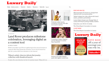 Luxury Daily's homepage from May 2, 2018