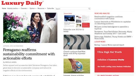 Never miss a luxury moment. Access the latest luxury business news and analysis, marketing and retail campaigns, features, special reports and live coverage during business hours. Check the $12 for 12 weeks offer for 22 percent off the annual subscription price.